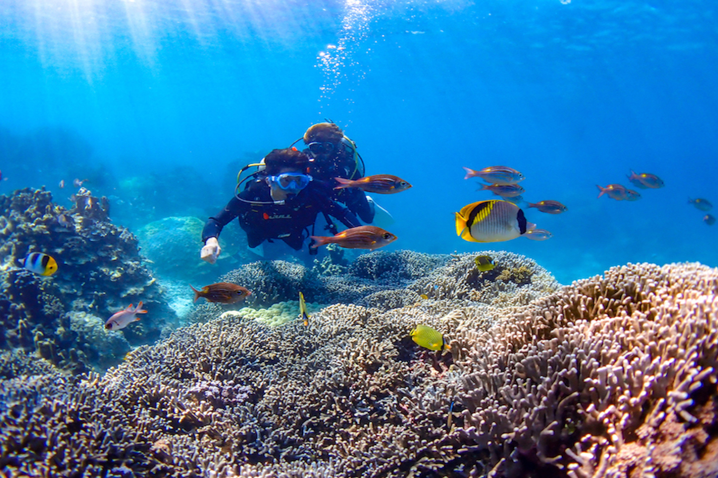 水中で呼吸が出来る、刺激的な体験をしてみませんか?最大水深6メートルの浅瀬で、色鮮やかなサンゴや魚たちを見に行きます。