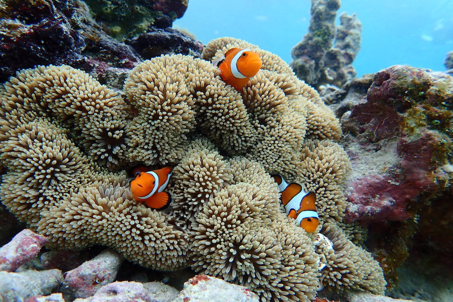 宮古島での体験ダイビング&シュノーケリングプランです。ご案内するのは、世界トップクラスのシュノーケリングゲレンデです。百種類以上のサンゴ礁や4種類ものクマノミなど、宮古島ならではの絶景はまさに圧巻の一言!お客様のペースで、ゆったりとダイビングをご堪能くださいね。
