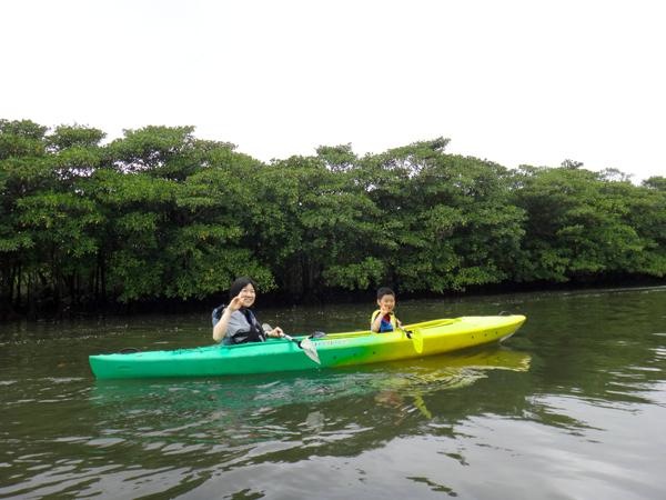 1日でマングローブカヤックと由布島の水牛車観光がセットになったプランです。午前中はカヤックでマングローブ生い茂る川を上流に向かいます。滝が見えるところまで来たら、カヤックを降りてトレッキング。沖縄県最大の滝、ピナイサーラの滝に向かいます。滝遊びとランチを楽しみ、マイナスイオンをたっぷり浴びてください。