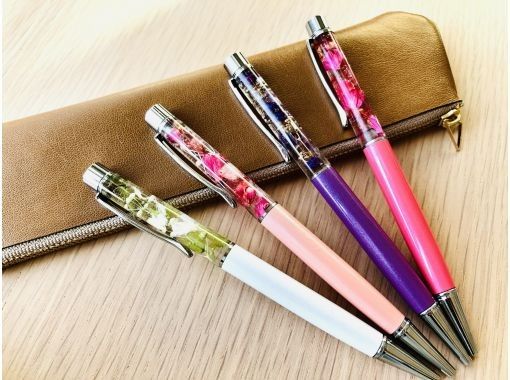 ペンのカラーや種類、ペンに入れるお花までお選びただけるので、世界にひとつだけのハーバリウムボールペンが出来上がります。