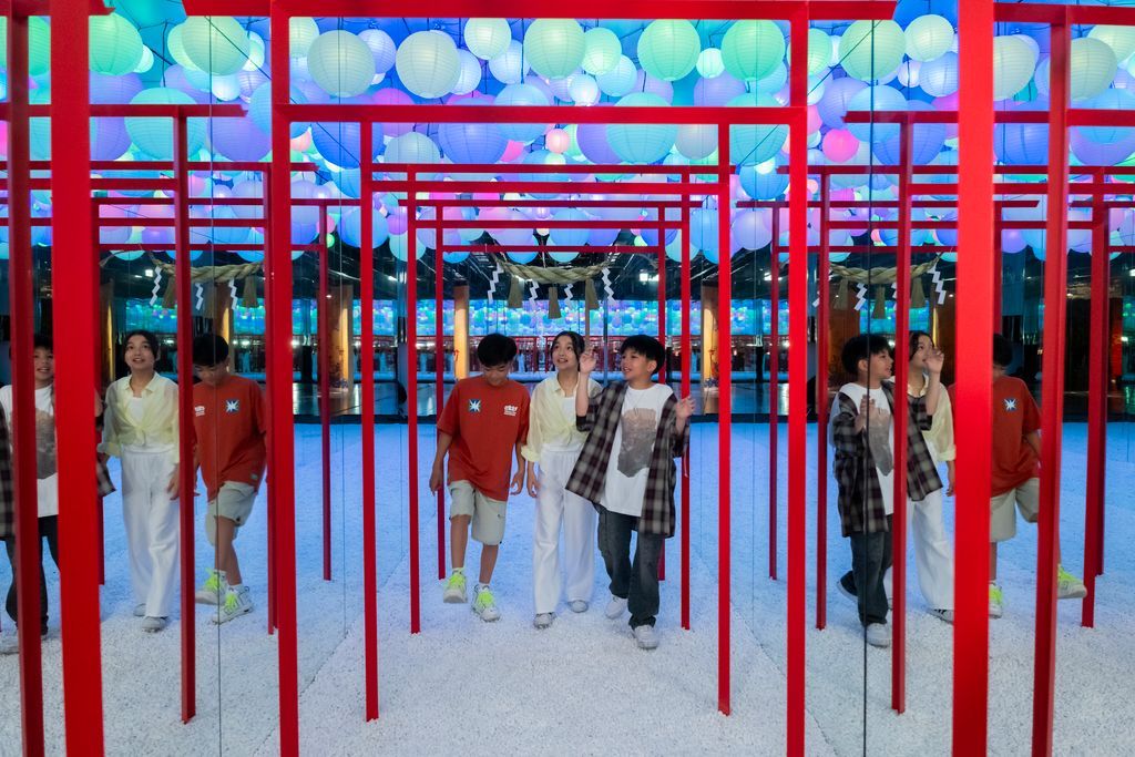 ランダムに色と明るさが変化する提灯と合わせ鏡が、幻想的な世界へ誘います。千本鳥居を超える“無限鳥居”をくぐった先にある「面白おみくじ」で、まずは今日の運試し。