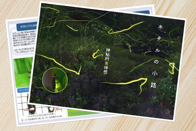 淡くきらめく初夏の風物詩,ハローウッズの森にある「ミズスマシの沢」でホタルの観賞会を開催します。沢のせせらぎに耳を傾けつつ、淡くきらめく2種類のホタルの飛翔をお楽しみいただけます。また、キャストによる「ホタルトークショー」も実施いたします。人生の1ページに残るような素敵な体験をご家族・ご友人とご堪能ください。,キャストによる「ホタルトークショー」,参加ご希望のお客様はお時間に合わせてご入場ください。