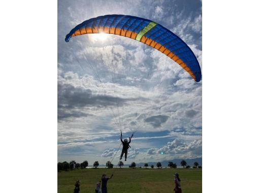 会場は大阪湾から安定した海風が吹き込む、パラグライダーに適した立地です。海風を翼にうけ、インストラクターの手の届く範囲でふわっと浮き