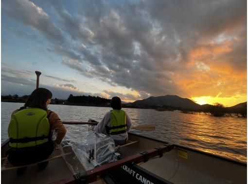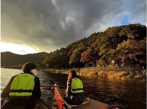 富士五湖の一つ河口湖でカナディアンカヌーに乗っての夕方90分ツアーです。