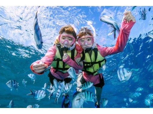 専用ボートで約5分の快適アクセス、開催率も約70%と高く、船から直接エントリーできるので、女性やお子様、体力に不安がある方でも気軽にシュノーケリングを楽しめます。洞窟探索の後は、カラフルな熱帯魚への餌付け体験で、お魚たちに囲まれる癒しのひと時を。