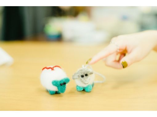 羊毛を専用の針(ニードル)でちくちく刺していくことで、形作ることができ、自分好みのストラップなどの小物を制作することができます。
