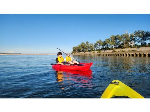 下流の流れのない川の中を、簡単に乗れる大きめのカヤックに乗って自由に遊んでもらう体験です。