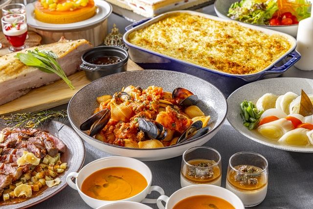ランチビュッフェ,「マーブルラウンジ」では冬の味覚を心行くまでご堪能いただけるランチビュッフェを開催いたします。 10種類もの瑞々しい新鮮野菜が並ぶサラダバーでは多彩なヘルシーコンディメントをご用意。「鴨胸肉の燻製 牛蒡のピュレとバルサミコジュレ」「蕪のエッセンスを活かしたパンナコッタ」などの前菜に加え、チーズやシャルキュトリー、ホームメイドブレッドコーナーでは「バゲット」や「ドライフルーツのカン .....もっと見る