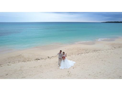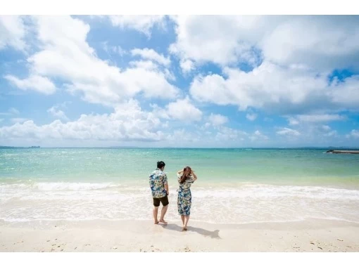 白い砂浜、青い海をバックに、一眼レフにてプロのカメラマンが付いてウェディングフォトが出来ます。沖縄旅行で気軽に楽しくウェディングフォトをしてみたい方、記念としてカップル写真を撮りたい方、ハネムーン等におすすめです♡