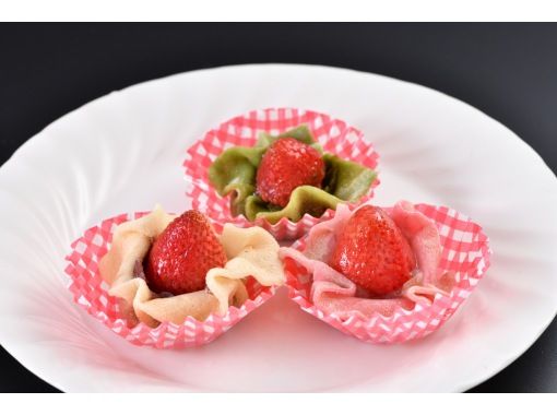 新鮮な国産いちごを生八つ橋でお花のように包んだ、当館名物の“いちごちゃん”を作っていただきます。