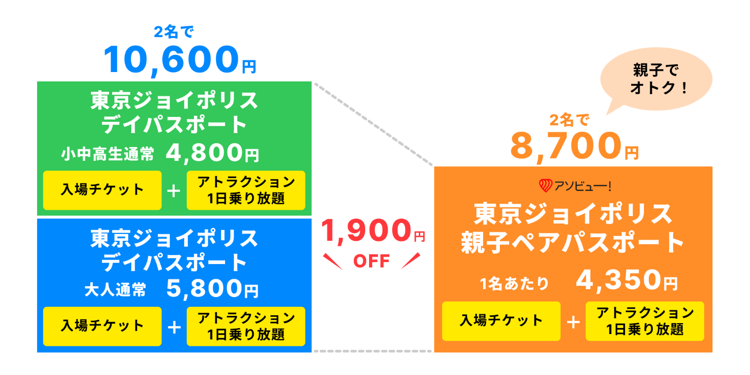 ペアでお得!国内最大級の屋内型テーマパーク「東京ジョイポリス」,※奇数名でご利用の方は「超特割!【最大800円割引】★東京ジョイポリス デイパスポート(入場+アトラクション1日乗り放題)」の購入がお得です! ※大人2名でのご利用の場合は「超特割!【期間限定 2,700円割引】東京ジョイポリス ウインターペアパスポート(大人2名分)」の購入がお得です! 東京ジョイポリスは、「デジタル」と「リアル .....もっと見る