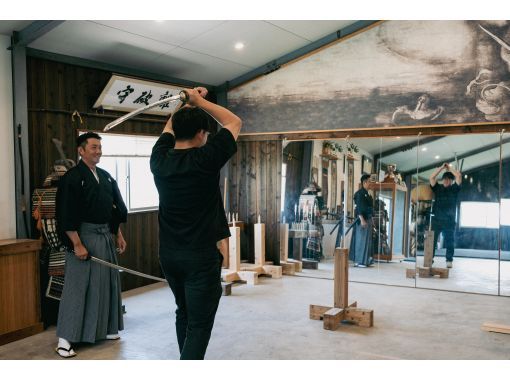 袴の着付け、禅体験、模造刀での試斬体験、講師による真剣試斬披露。武士の精神性と刀の真髄を学びます。<BR>指導者は抜刀道の全国大会優勝、文部科学大臣賞受賞の道場主や、経験豊富な講師陣が丁寧に指導します。