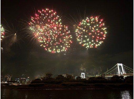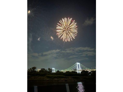 [発 18:00] 越中島船着場 ➡ レインボーブリッジ ➡ ≪お台場海浜公園水域内にてレインボー花火観賞≫ ➡ [着 20:00] 越中島船着場