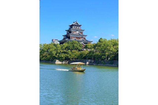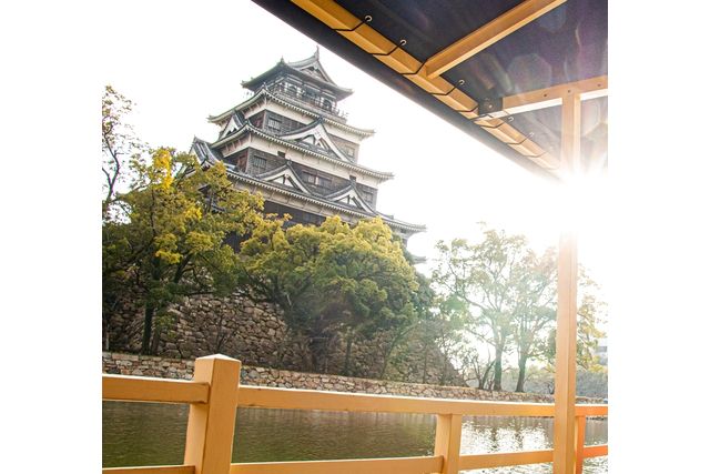 遊覧船から眺める広島城~ゆったり家族でカップルで,広島城お堀を遊覧船で巡りながら、広島城の歴史や日本文化を感じる20分の遊覧です。 戦国時代の終盤に毛利輝元によって築城された広島城は、今の広島の礎となった場所です。この広島城の歴史に触れながら、遊覧船からの景色をお楽しみください。
