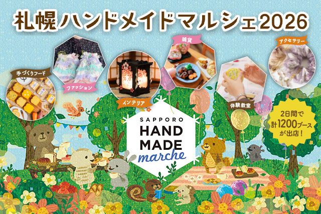 1,200ブースの手づくり作家による北海道最大級のハンドメイドの祭典,札幌ハンドメイドマルシェは、つどーむを会場として、全国から集まったハンドメイド作家による25,000点以上のオリジナルの手づくり作品や手づくりフードが自由に展示・販売される北海道最大級のハンドメイドイベントです。 また、当日はハンドメイド未経験の方でも老若男女を問わずに世界にひとつだけのハンドメイド作品づくりが体験できる「マルシェのがっこう」も開催します。 実に様々な分野から集まったハンドメイド作家が一同に会する2日限りの”ものづくり”の祭典。 ここでしか出会うことができない皆さんのお気に入りの1点を探しに、札幌ハンドメイドマルシェに是非ご来場ください。,, .....もっと見る.....閉じる