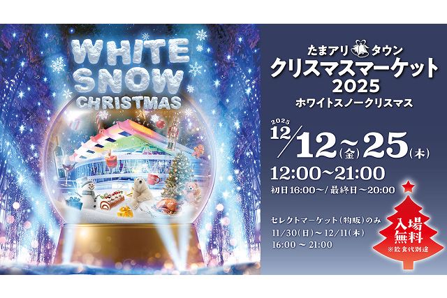WHITE SNOW CHRISTMAS,今年のテーマは「WHITE SNOW CRISTMAS」。 イルミネーションが輝く木々の中、「雪」をイメージした装飾がロマンチックなクリスマスマーケットです。 マーケットに欠かせないグルメもホワイトスノーをイメージしたメニューをラインナップ。クリスマスムードにあふれた雑貨やギフトなどとともにお届けします。,,