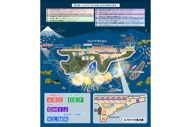 第4回富士山花火 vs スピードウェイ 2026,「富士山花火 vs スピードウェイ 2026」は、富士スピードウェイを中心に様々なモビリティ体験を提供する複合エリア「富士モータースポーツフォレスト」と連携した大規模花火イベントです。 富士山の目前で打ち上がる世界最高峰の花火と、国際サーキット「富士スピードウェイ」を舞台に繰り広げられる花火とモータースポーツとの“競演”は、まさに“vs”と表され .....もっと見る