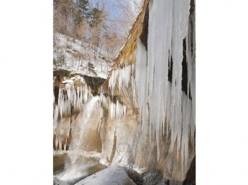 国立公園支笏湖からすぐ近くにある「七条大滝」でも、落差16メートルの名瀑が、冬の絶景へと変化していきます。