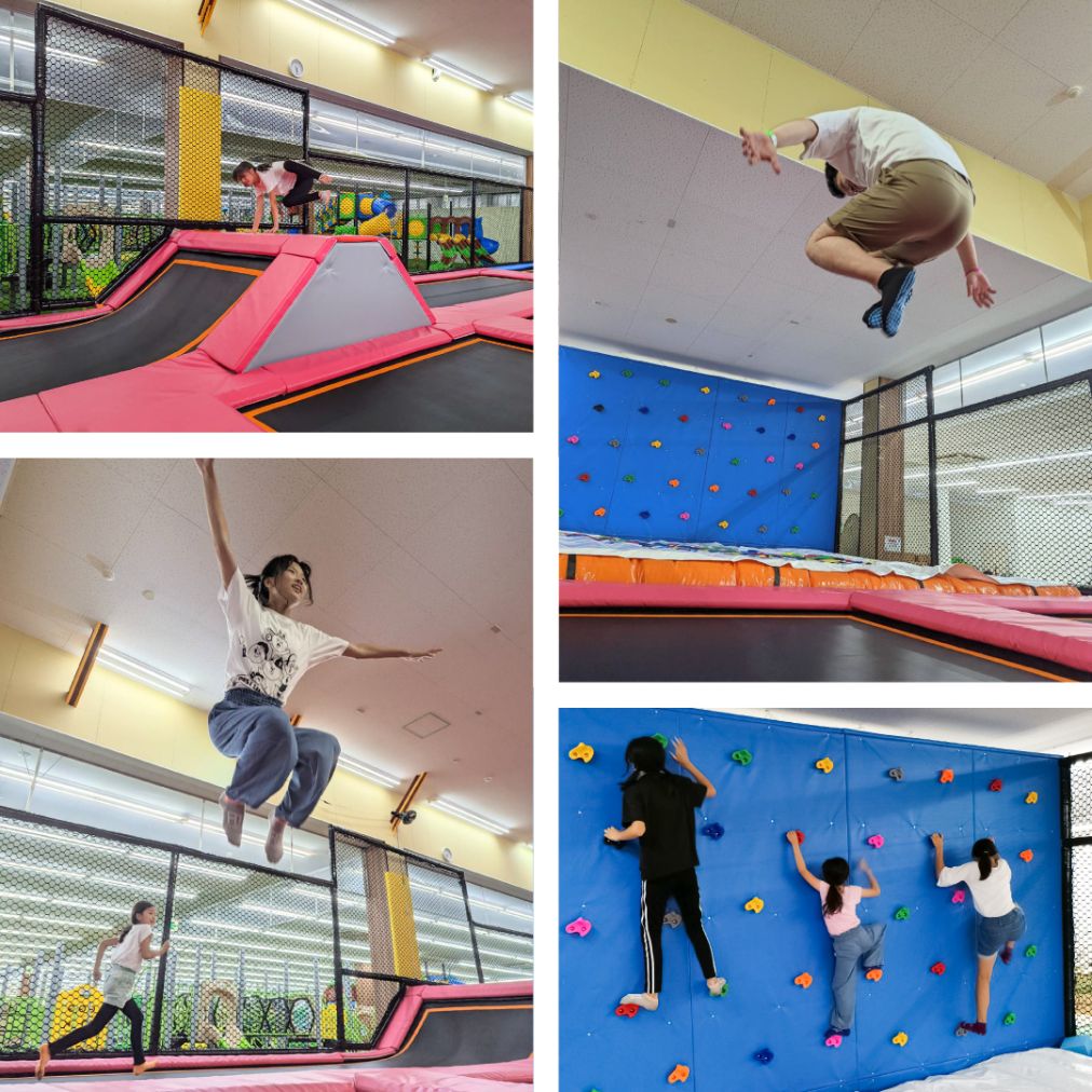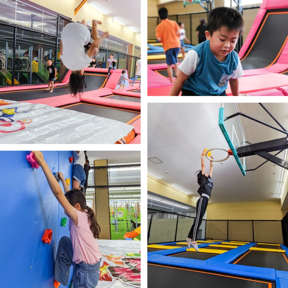 おすすめポイント!,北陸初の室内型「JUMPIN’ DREAMトランポリンパーク」。 大小20面のトランポリンに加え、巨大エアバッグやダンクに挑戦できるバスケットゴール、アクティブウォールなど多彩なアトラクションを完備。全天候型で雨の日でも安心して遊べます。大人も子どもも思いきり体を動かせるので、レジャーはもちろん運動不足解消にもぴったり。 初回は入会手続き(約5分)がございます。動きやすい服装.....もっと見る
