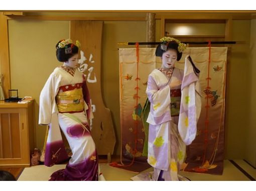 祇園花見小路通りの料理屋さんで、お昼のお食事、舞妓さんの京舞を鑑賞、舞妓さんとお座敷遊び体験、撮影自由、個室VIP貸切プラン、小人数コースです。