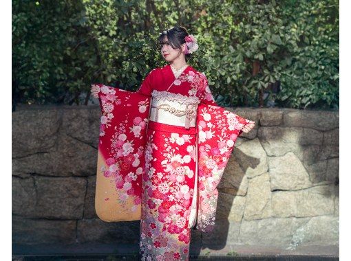 日本の成人式や結婚式などで着用される振袖を街歩きの散策でレンタルできます。