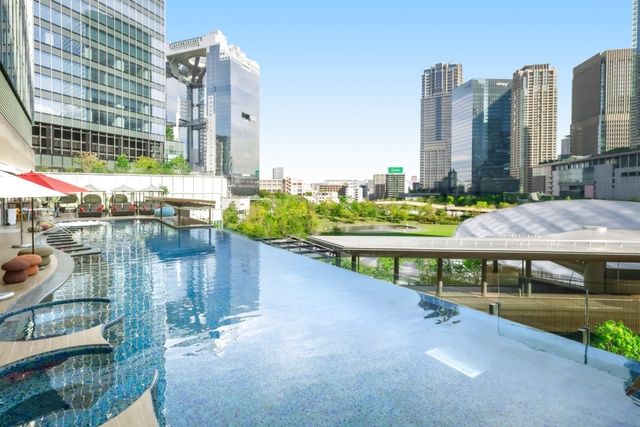 緑豊かな公園と都会の景観を愉しめる屋外温水プールでおもいっきり