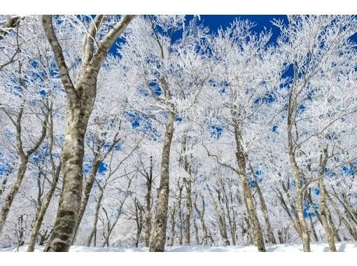 雪に覆われたブナの原生林を歩けば、まるで物語の世界に迷い込んだかのような幻想的な景色が広がり、冬の静寂と神秘に包まれます。