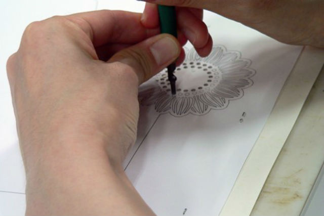 着物の染めに使う伝統的な和紙である柿渋紙を使用します。