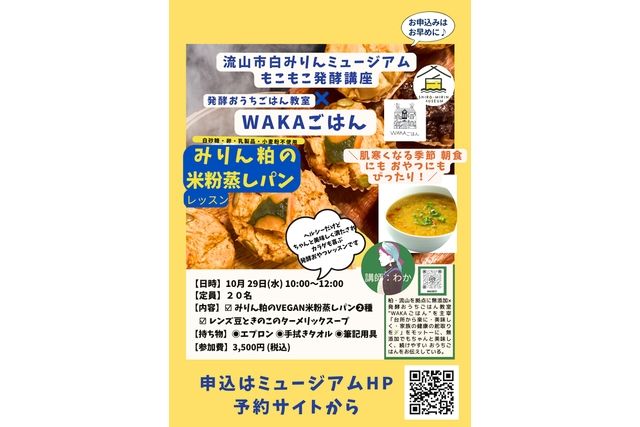 発酵おうちごはん教室 WAKAごはん,ヘルシーだけどちゃんとおいしく満たされカラダも喜ぶ発酵おやつレッスン,白砂糖・卵・乳製品・小麦粉不使用 みりん粕の米粉蒸しパンレッスン,講師:WAKA 柏・流山を拠点に発酵おうち"ごはん教室WAKAごはん”を主催 「楽に・美味しく・台所から家族の健康の舵取りができるママを増やす」家庭でも続けやすく無添加でもちゃんと美味しいを調理のコツをお伝えしている。