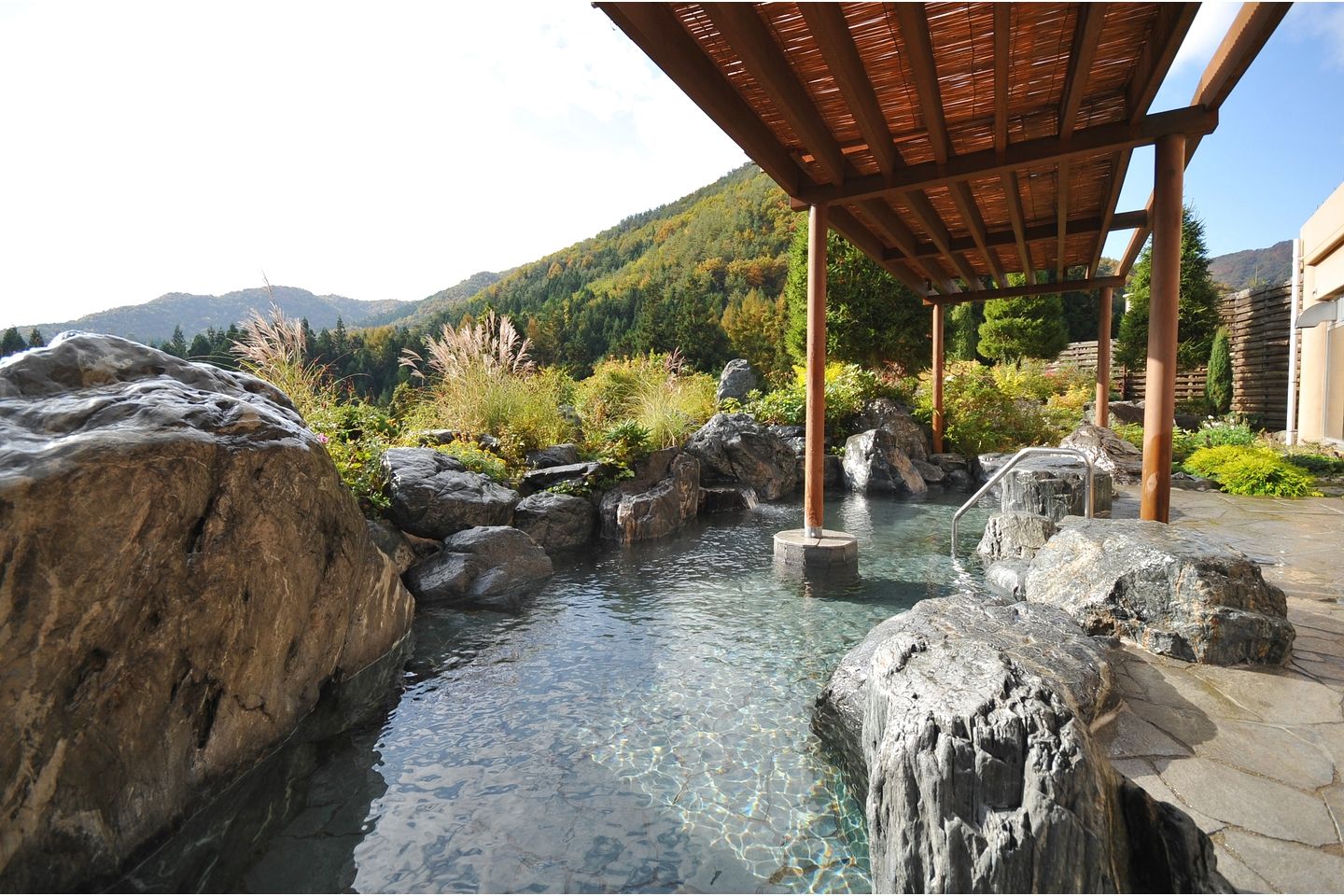 雄大な山々の美しい稜線を見渡す「花咲の湯」。天然温泉を堪能しながら、季節ごとの彩を見つけてみては?,清らかな出湯と美しい花に囲まれたこの場所は、訪れる人たちすべての心の中に、やすらぎとよろこびの花を咲かせます。 近くのレジャーで一日遊んだ後は、当店自慢の温泉で温まるのはいかがでしょうか。 皇海山をはじめとする雄大な景色や四季折々の花を楽しみながら、心いくまでリラックスしてください。,館内のお食事処 .....もっと見る