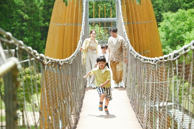 本格的な樹上体験を時間制で楽しめるトレックコースは、小学1年生かつ身長110cm以上の方から参加できます。