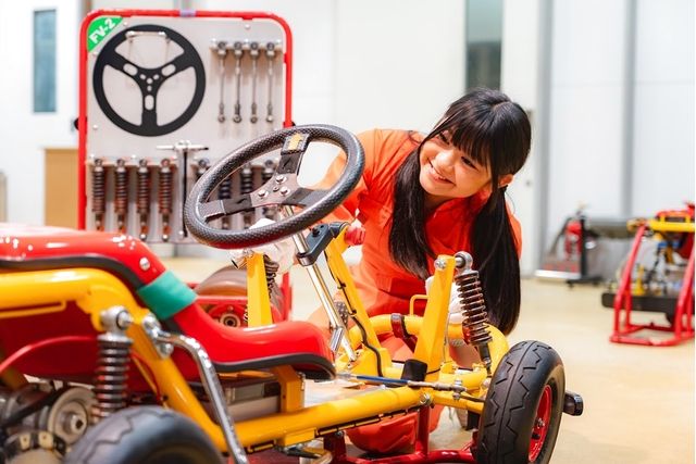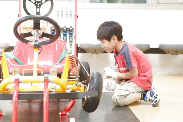 ,本物の工具を使ってクルマを組み立てて、走らせてみよう。 何度もチャレンジすると組み立てるパーツが増え、難易度があがっていきます。,,