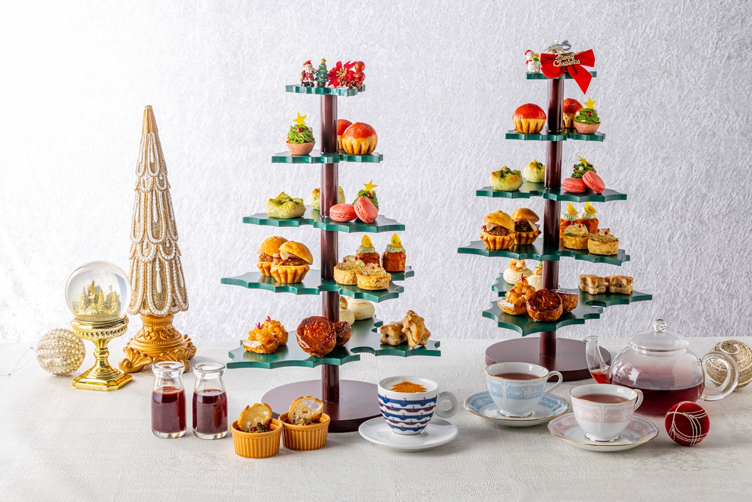 上質なオーガニックティーブランド【ART OF TEA】の紅茶を含む20種類以上のお飲み物とご一緒にクリスマス気分をお楽しみいただけます。,メニュー詳細,・シナモンアイスワイン (ノンアルコール) ■スイーツパン ・スパイススコーン バタークリームサンド ・クイニーアマンフランボワーズ ・抹茶と白餡のモンブランタルト ・オレンジガナッシュ入りブリオッシュ ・キャラメルりんごのデニッシュ ■お食事パン ・スモークダックと無花果シトラスジャムのブリオッシュサンド ・海老とトリュフクリームチーズのオープンサンド ・ラタトゥイユのケークサレ ・ローストチキンのバジルパン ・プルドポークパイ ■セイボリー ・ビーフシチュー ■デザート ・マカロン 【コーヒー・紅茶 LO30分前】 ・サンタのクランベリーハイビスカスティー※ ・聖なる夜の抹茶アイスティー ・アイスティー ・コーヒー(ホット※orアイス) ・カフェラテ(ホットorアイス)※ ・シナモンジンジャーラテ(ホットorアイス)※ ・カプチーノ(ホット)※”ART OF TEA”ホットティーセレクション ・ヒルトンオリジナルブレンド ・ホリデーシトラス ・ヴェルベット ・ショコラオレンジ ・ダージリン ・アールグレイ ・イングリッシュブレックファースト ・フロウ※ ・エジプシャン カモミール※ ・レモンメレンゲ※ ・ハイビスカスベリー※ ※カフェインレス