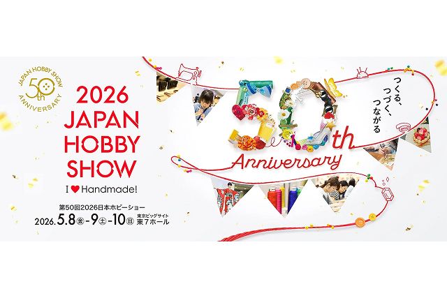 第50回 2026 日本ホビーショー,みなさまに支えられ2026年、日本ホビーショーは50周年を迎えます。 ハンドメイドを愛し、つくりつづけてきた軌跡を次の未来へと紡いでいく“50周年 つくる、つづく、つながる”はそんな想いを込めた言葉です。 50年間の感謝と、これから広がる日本ホビーショーの未来に向けたワクワクする記念のイベントとなりますので、どうぞご期待ください!,,