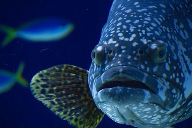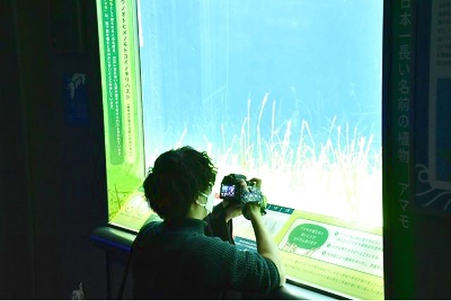 水族館営業時間後に、不要な照明を落として館内をできるだけ撮影しやすい状態に。