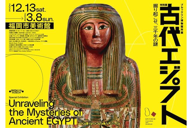 古代エジプトが福岡に出現!,ブルックリン博物館が誇る古代エジプトコレクションから、選りすぐりの名品群が福岡に集結。 彫刻、棺、宝飾品、土器、パピルス、そして人間やネコのミイラなど約 150 点の遺物を通じて、私たちの想像を超える高度な文化を創出した人々の営みをひも解きます。 謎に満ちた三千年をともに旅する案内人は、いま注目を集める気鋭のエジプト考古学者、河江肖剰。 人々はどんな暮らしを営み、何を食べ、何を畏れていたのか。彼らはどんな言語を話し、何を書き残したのか。ピラミッドはなぜ、どのようにして造られたのか。ミイラに託されたメッセージは。そして死後の世界とは。 これまでのエジプト展で見過ごされてきた「知っているようで知らない事実」から最新技術を使ったピラミッドの研究成果まで、映像や音声も交えて紹介します。 三千年の謎を掘り起こし、知への探求心を呼び覚ます空間。福岡に広がる古代エジプトの世界へ、ようこそ。