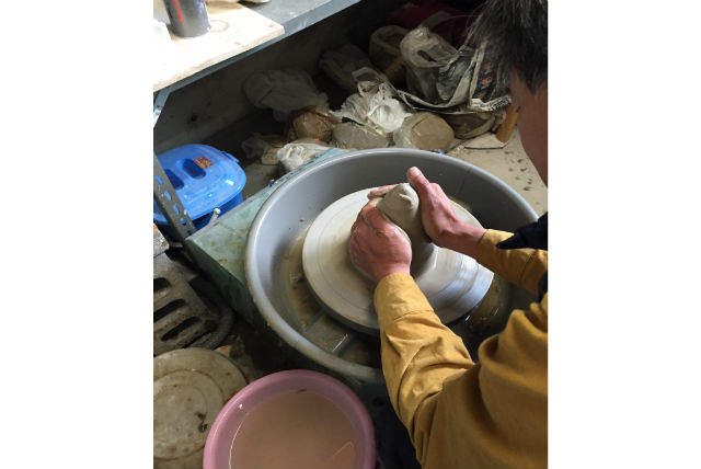 粘土を土台から作成する手びねりでの陶芸体験