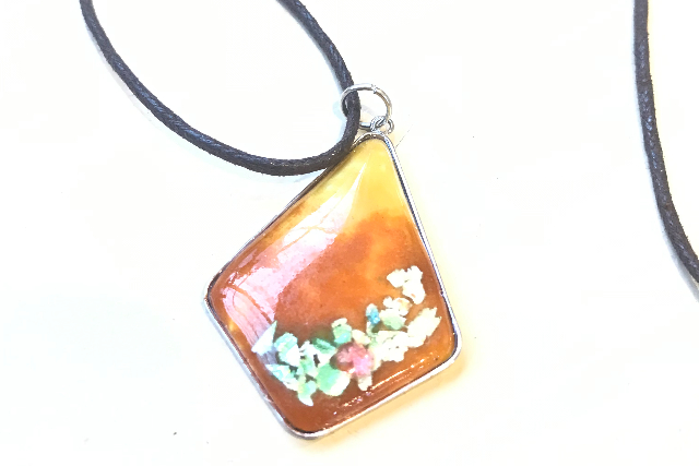 ・銅板の上にガラス質の色付きの釉薬をお好みでのせて電気炉で焼成