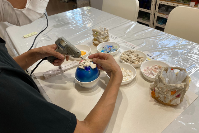・サンゴやガラスを組み合わせて、自分だけのランプに加工