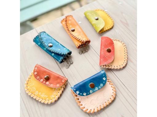 名前やメッセージを刻印できる!自分だけのレザーアイテム作り 使えば使うほど味が出るレザーアイテム。当プランでは、キーケース、ペンケース、パスケース、コインケースの中から1つ選んでお作りいただけます。染織やかがり縫いなどで、革をお洒落にデザイン。自分の名前やメッセージを刻印して、世界に一つだけのレザーアイテムを作りましょう。機能性にも優れ、とってもコンパクト。いつでもサッと取り出せる嬉しいアイテムです。