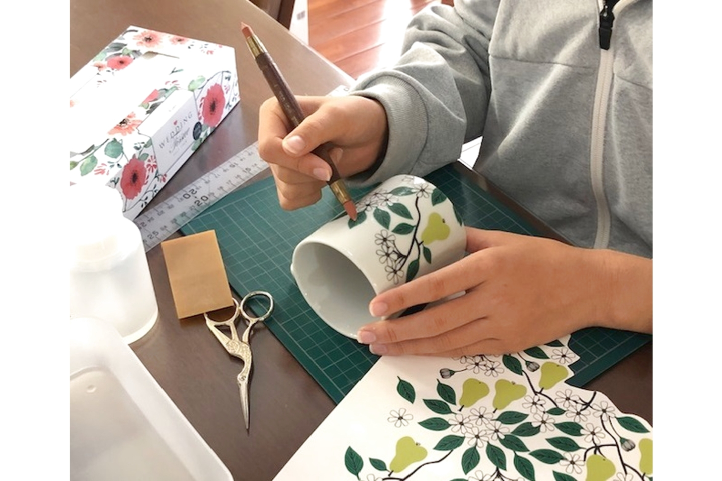 ・シール状のデザイン紙を貼り、オリジナルの器を作ります☆