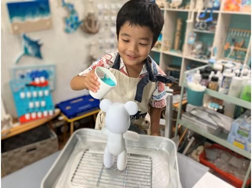 ポーリングベアーとは、液状にしたアクリル絵の具をフィギュアの上から流し、マーブル模様などの様々な色彩表現を生み出しながらオリジナルベアーを作成のことです。