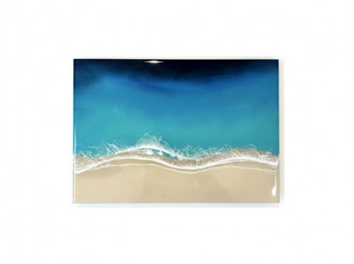ヒートガンを使い、白いレジンを飛ばし『波』を作ります。