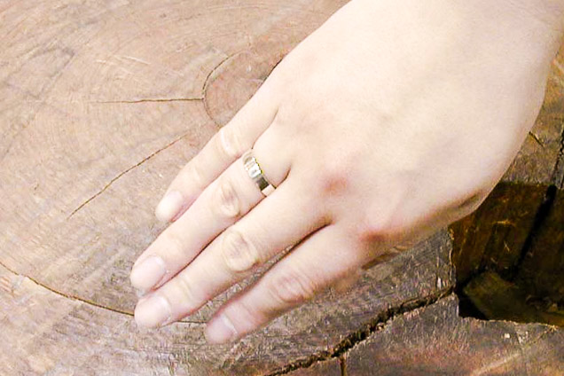 刻印を使って模様やイニシャル、記念日等入れて世界に一つだけのリングが完成します。