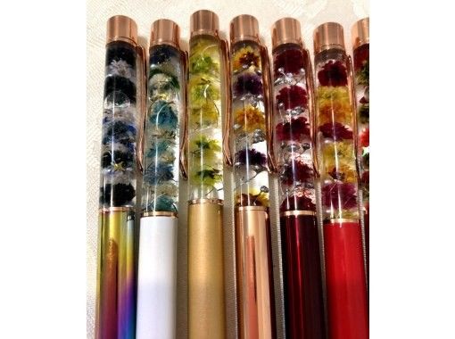ペン本体は多色、花材も豊富な種類をご準備していますので、お好きな物をお選び下さい。