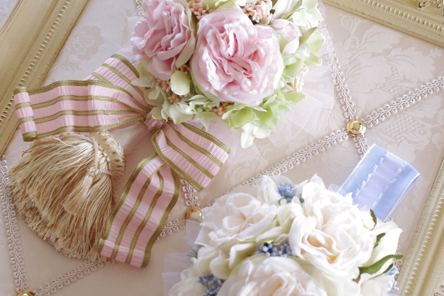 女性限定サロンで開催しているシルクフラワーの体験レッスンです。タッセル付きの壁飾りを約2時間で完成させます。お花やリボン・タッセルはお好きな色をお選びいただけます。色づかいで涼しげにも豪華にも、お好みのイメージで仕上げることができますよ。当サロンはデコール・ド・シルクフラワー協会代表より直接指導を受けた九州唯一の教室です。安心してお越しくださいね。