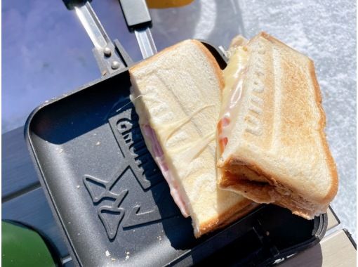 雪で作ったテーブルとベンチでホットサンドとお茶でゆったりとした時間と空間をお愉しみください。