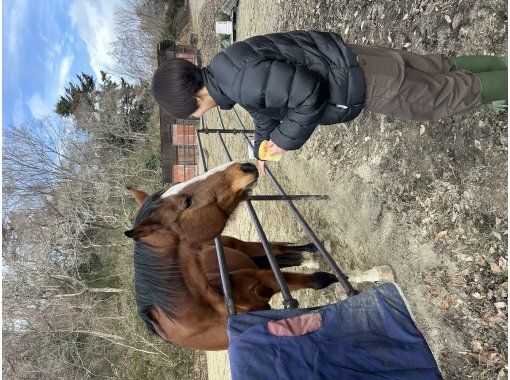 馬たちにおやつをあげていただけます。自信がない方でもスタッフが丁寧にアシストいたしますのでご安心ください。