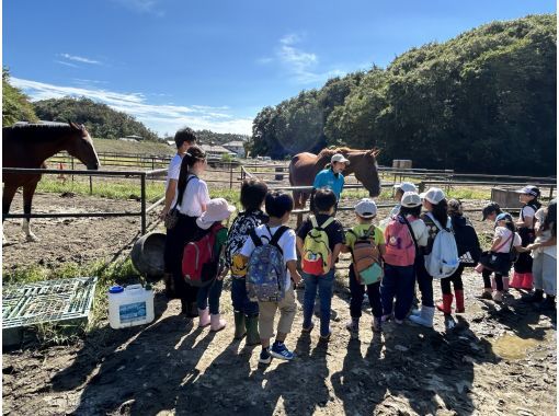 インストラクターの指示のもと馬たちと挨拶体験を行い、馬と仲良くなりましょう!