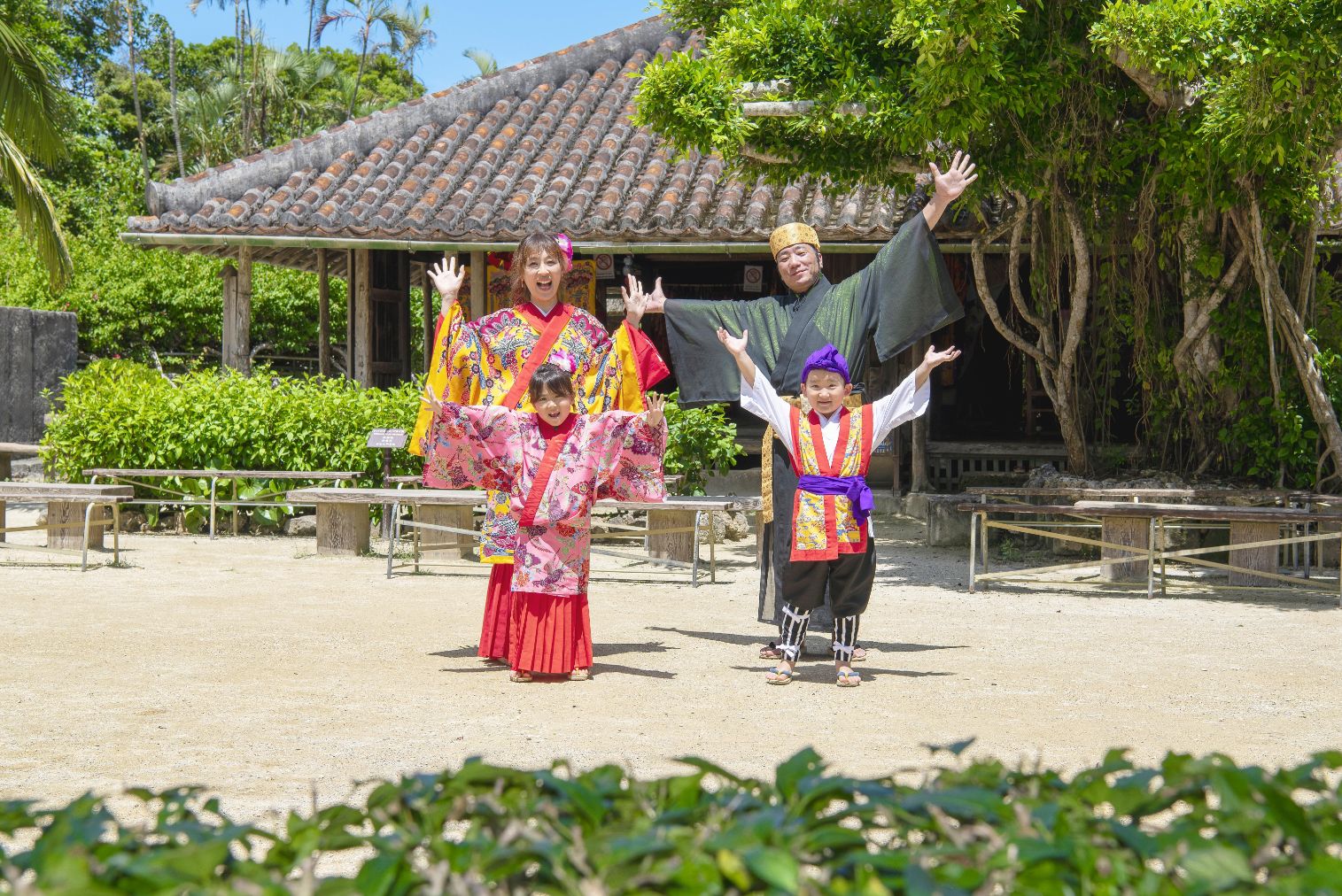 琉球王国時代に作られた琉球独自の衣装「ドゥジン&カカン」を着て写真を撮る事が出来ます。